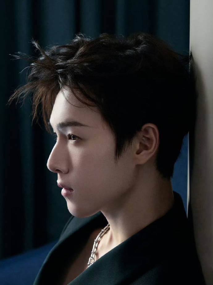 一身全黑双排扣西装,真空深V领口直接开到胸口,按理说这种“危险穿法”稍不注意就会滑向油腻。但李昀锐偏偏穿出了清爽感——常年健身练出的肩背线条像衣架一样撑住西装廓形,肩线利落得像用尺子量过,深V露出的锁骨到胸口那截皮肤,干净得没有一丝多余肌肉,反倒是少年气的清俊感中和了黑色的沉闷。最绝的是他连衬衫都省了,却靠挺拔的体态把“真空穿法”穿出了禁欲系贵气,这才是真正的“克制里藏锋芒”。